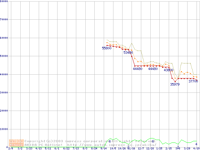Socket 603 (micro-PGA,FSB 400MHz,L2 512KB,Prestonia)の最安値推移