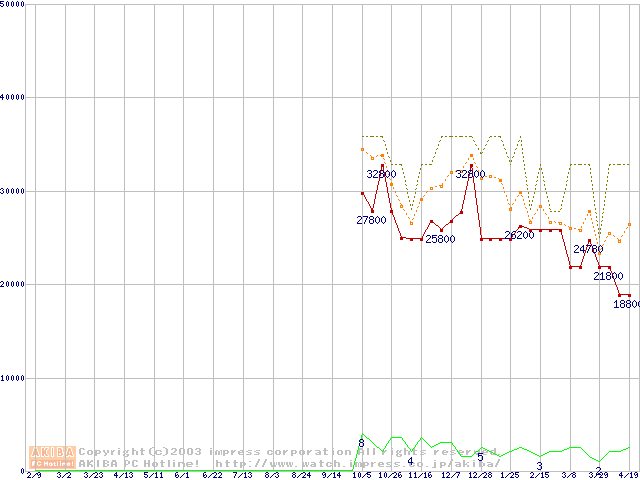 PC3500(DDR433) DDR SDRAM DIMMの最安値推移
