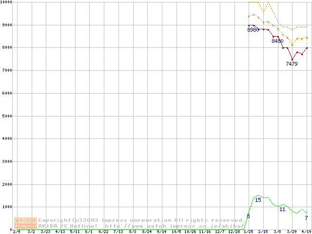 HDD 40GB~50GB未満(5400rpmクラス)の最安値推移