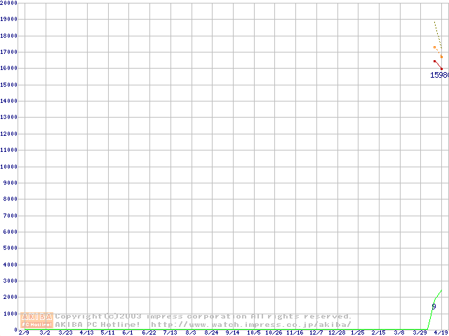 HDD主要製品(最安値1万5千円~2万円未満)の最安値推移