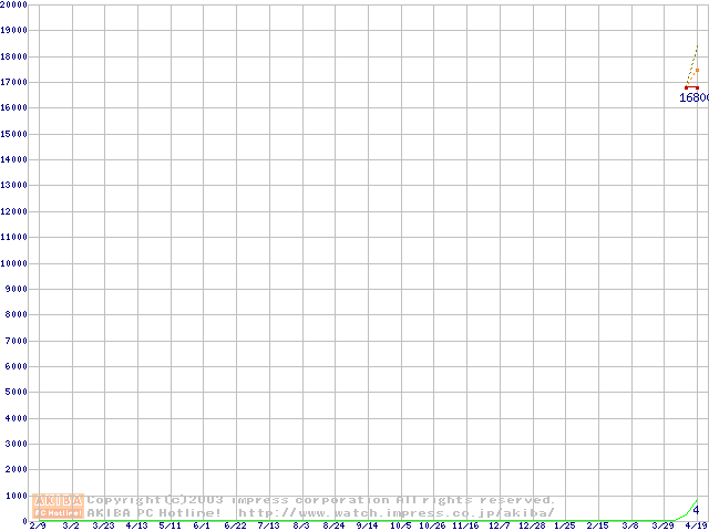 Travelstar 80GN (8.5mm,4200rpm,UltraATA/100,2MB,FDB,40GB/Platter)の最安値推移