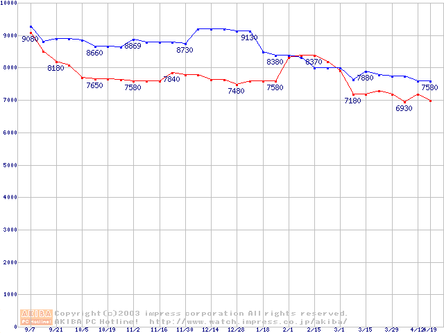 | DiamondMax Plus 8 (7200rpm,2MB,UltraATA/133,FDB)の最安値推移 |