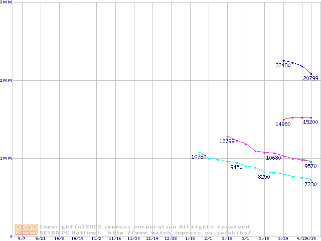 | Barracuda 7200.7 (7200rpm,UltraATA/100,2MB,80GB/Platter,FDB)の最安値推移 |