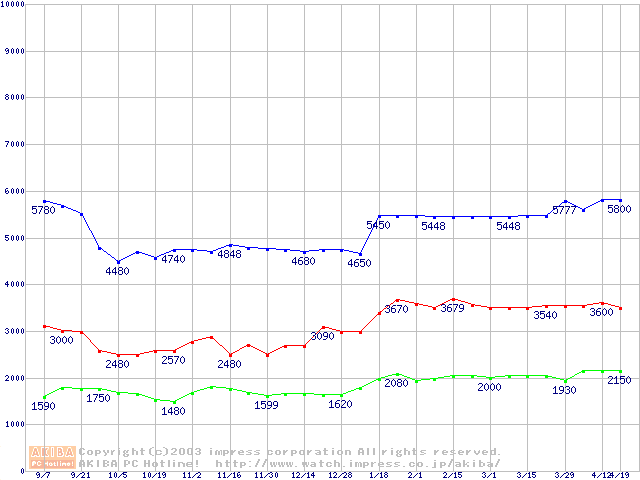 | [↓次グラフ]: | PC133 SDRAM DIMM CasLatency=2の最安値推移 |
