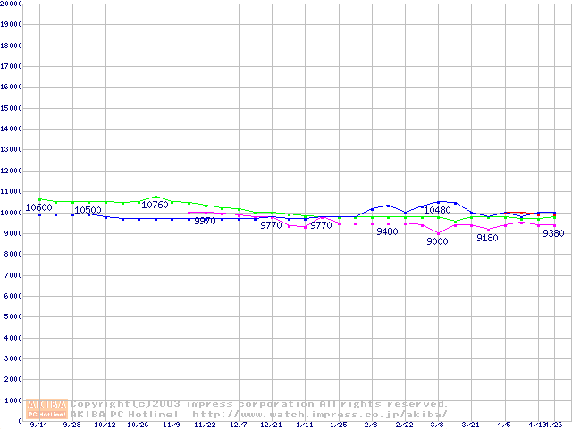 | [↑前グラフ]: | 2.5インチHDD主要製品の最安値推移 |