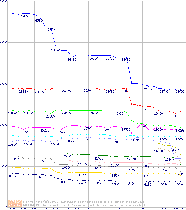 Socket 370・FSB 133MHzの最安値推移
