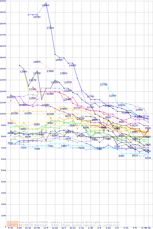 HDD主要製品の最安値推移