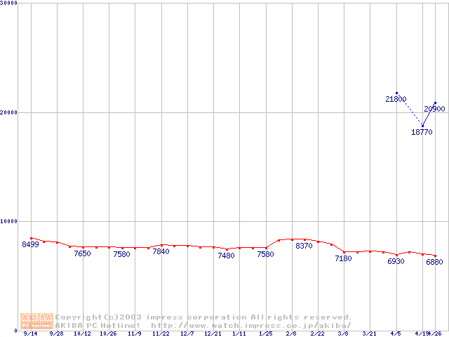 | [↑前グラフ]: | HDD 100GB以上(5400rpmクラス)の最安値推移 |