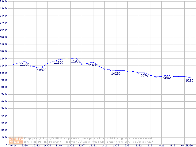 | [↓次グラフ]: | HDD 100GB以上(5400rpmクラス)の最安値推移 |