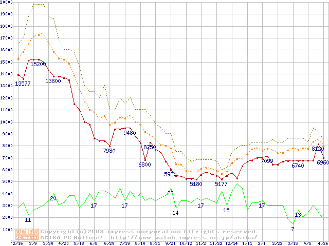 PC133 SDRAM DIMM CasLatency=2の最安値推移