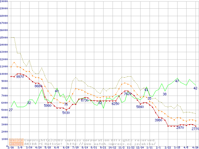 メモリ主要製品の最安値推移