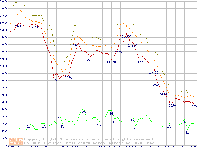 PC2100(DDR266) DDR SDRAM DIMM(CL 2.0)の最安値推移