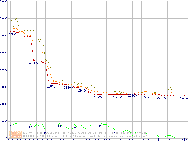 Socket 603 (micro-PGA,FSB 400MHz,L2 512KB,Prestonia)の最安値推移