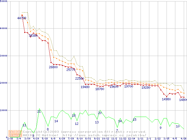 Athlon MP 2000+ (1.67GHz) リテールパッケージの価格推移