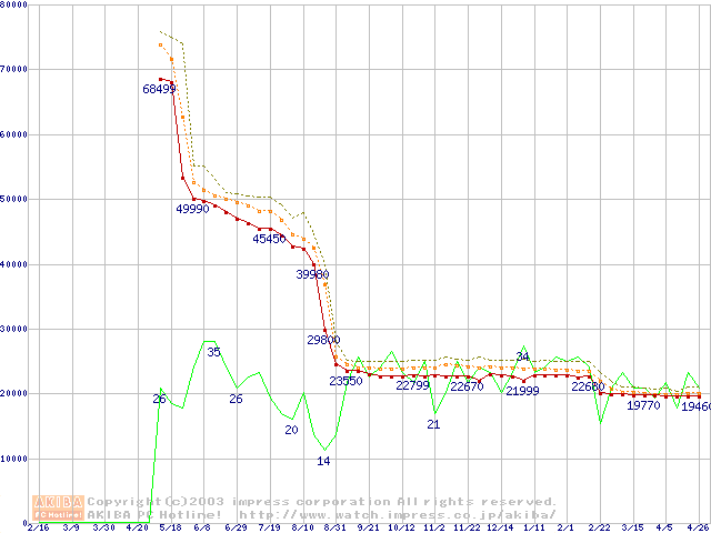 Socket 478 (micro-PGA,FSB 533MHz,L2 512KB,Northwood)の最安値推移