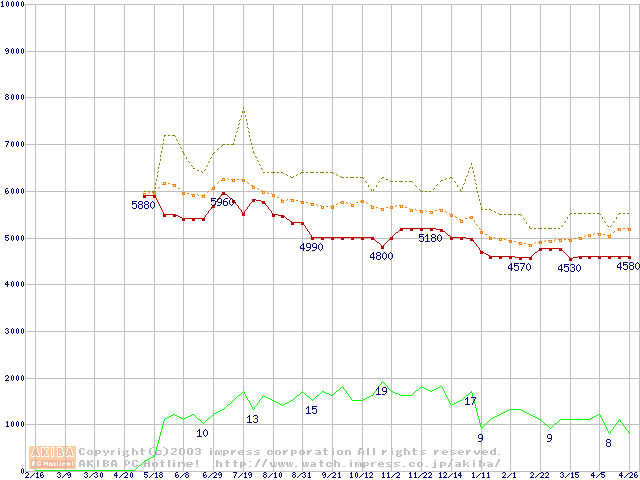 PC800-40 DRDRAM RIMMの最安値推移