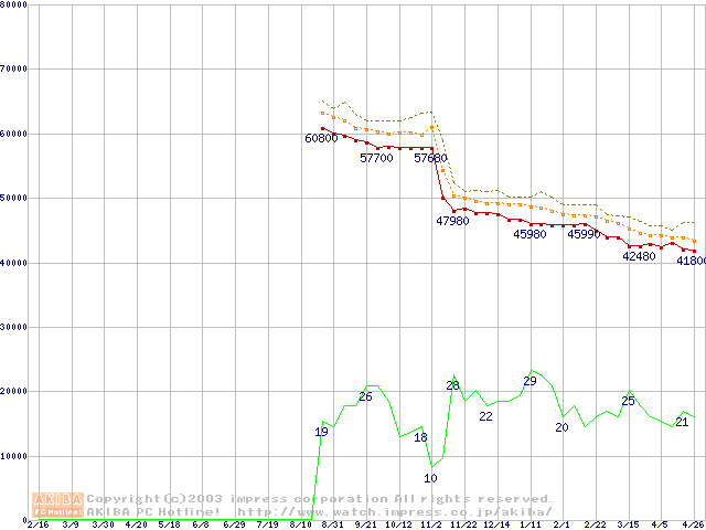 Pentium 4 2.80GHz リテールパッケージの価格推移