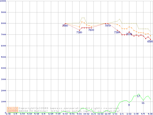 Fireball 3 (5400rpm,UltraATA/133,2MB,FDB)の最安値推移