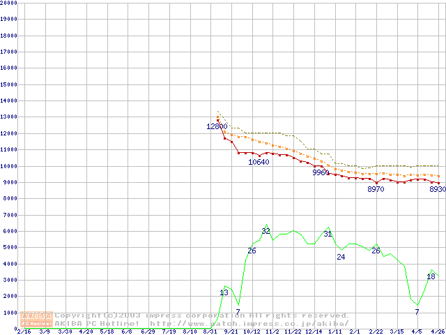 DiamondMax Plus 9 (7200rpm,2MB,UltraATA/133,FDB)の最安値推移