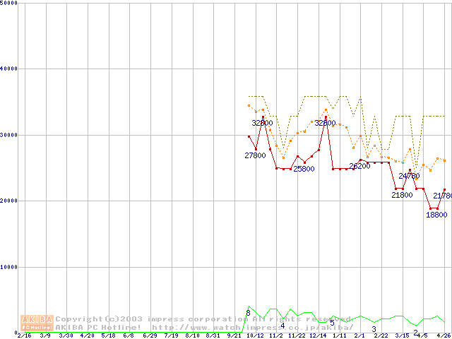 PC3500(DDR433) DDR SDRAM DIMMの最安値推移