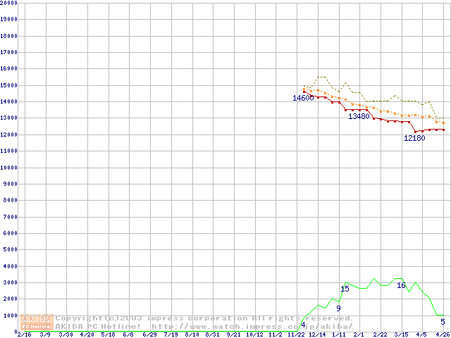 MHSシリーズ (9.5mm,4200rpm,UltraATA/100,2MB,FDB,30GB/Platter,FDB)の最安値推移