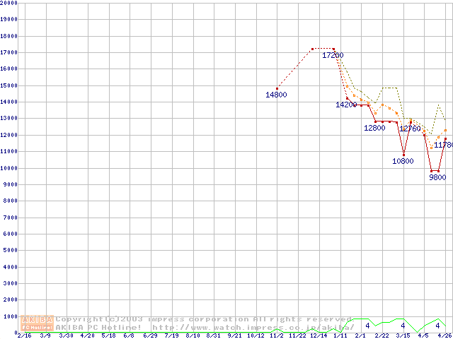 PC3500(DDR433) DDR SDRAM DIMMの最安値推移