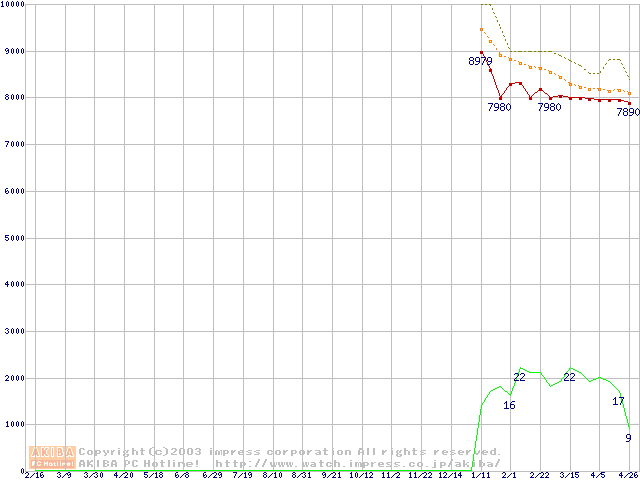 DiamondMax Plus 9 (7200rpm,2MB,UltraATA/133,FDB)の最安値推移