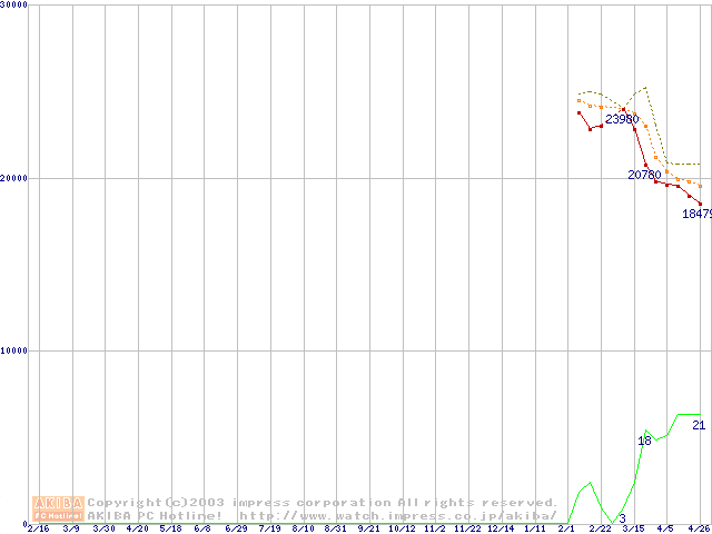 HDD主要製品(最安値1万5千円~2万円未満)の最安値推移