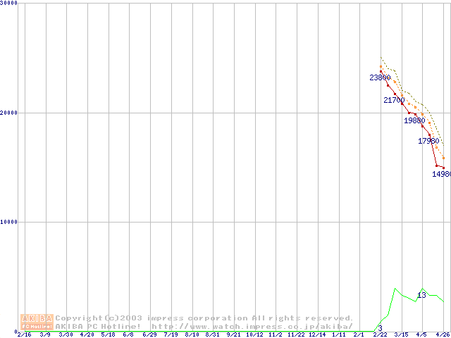 Socket A (OPGA,FSB 333MHz,L2 512KB,Barton)の最安値推移