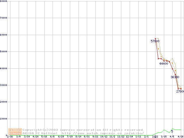 Socket A (OPGA,FSB 333MHz,L2 512KB,Barton)の最安値推移