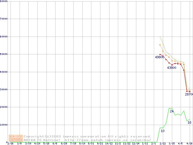 Athlon XP 2800+ (2.08GHz) リテールパッケージの価格推移