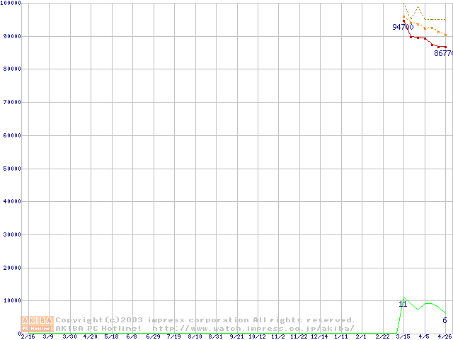 Socket 604 (micro-PGA,FSB 533MHz,L2 512KB,Prestonia)の最安値推移