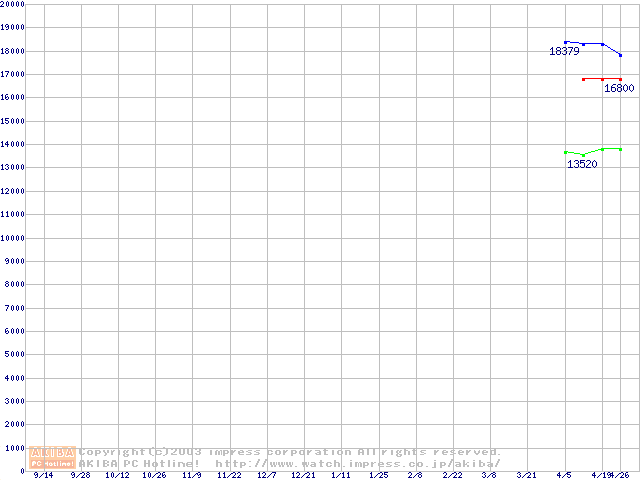 | [↑前グラフ]: | Travelstar 80GN (9.5mm,4200rpm,UltraATA/100,8MB,FDB,40GB/Platter)の最安値推移 |