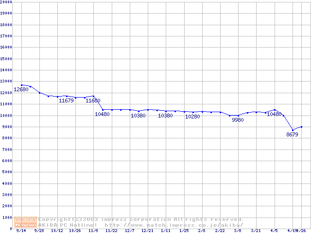 | [↓次グラフ]: | Socket A (OPGA,FSB 266MHz,L2 256KB,Thoroughbred)の最安値推移 |