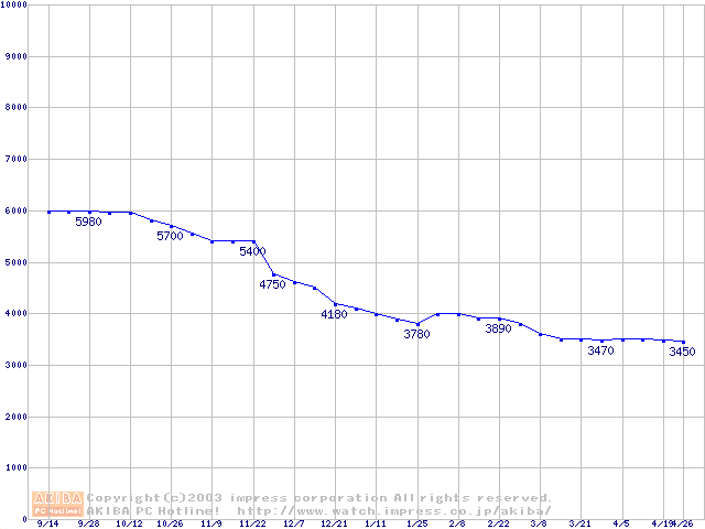 | [↓次グラフ]: | Socket A (PGA,FSB 200MHz,L2 64KB,Morgan)の最安値推移 |