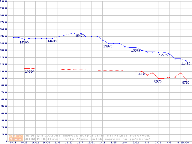 | [↑前グラフ]: | SpinPoint V80 (5400rpm,UltraATA/133,2MB)の最安値推移 |