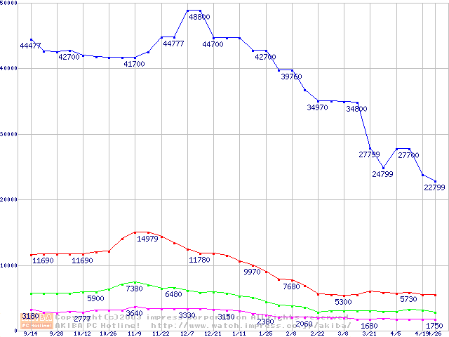 | [↑前グラフ]: | PC3500(DDR433) DDR SDRAM DIMMの最安値推移 |