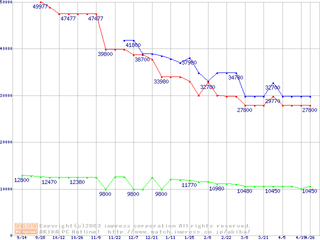 | [↓次グラフ]: | Socket 478 (micro-PGA,FSB 800MHz,L2 512KB,Hyper-Threading,Northwood)の最安値推移 |