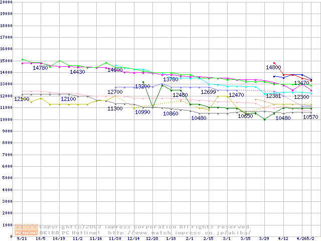 | [↓次グラフ]: | 2.5インチHDD主要製品(最安値1万5千円~2万円未満)の最安値推移 |