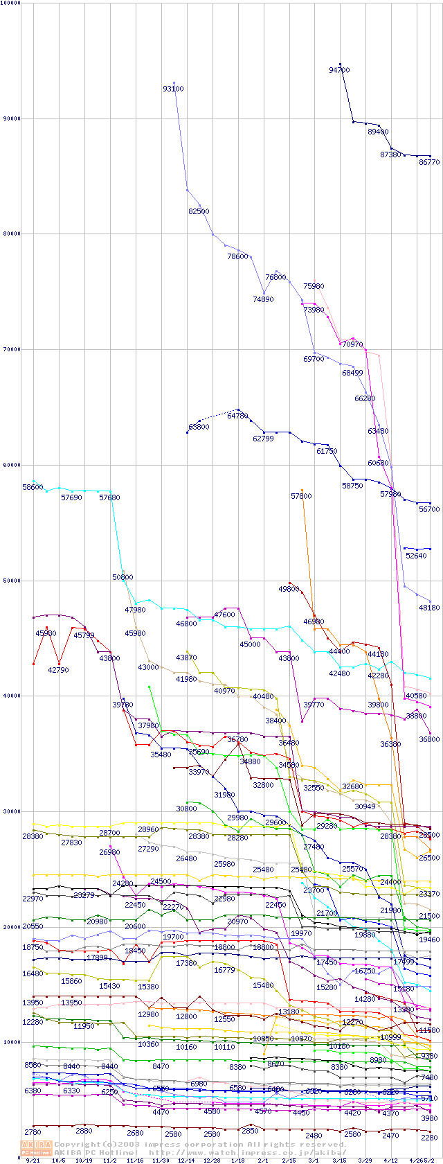 CPU主要製品の最安値推移