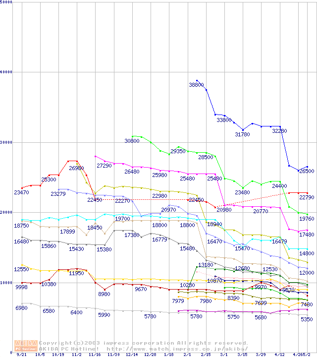 Socket A・FSB 200MHzの最安値推移