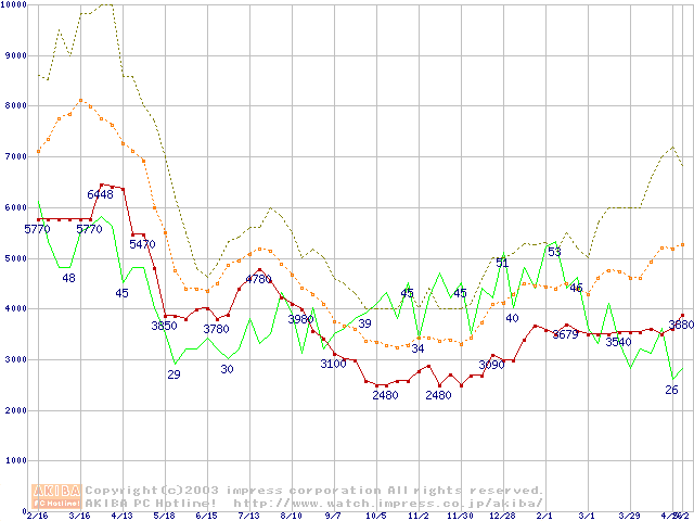 PC133 SDRAM DIMM CasLatency=3の最安値推移