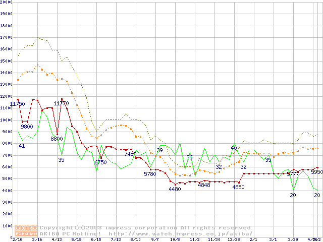 PC133 SDRAM DIMM CasLatency=3の最安値推移