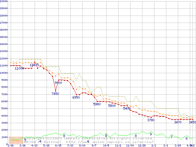 Socket A (PGA,FSB 200MHz,L2 256KB,Thunderbird)の最安値推移