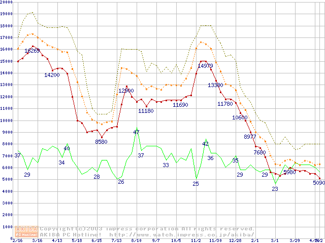 PC2100 DDR SDRAM 512MB(CL2.5)の価格推移