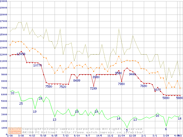 PC2100(DDR266) DDR SDRAM DIMM ECC対応 Registeredタイプの最安値推移