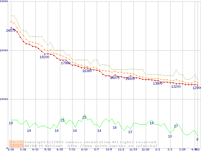 MKシリーズ (9.5mm,4200rpm,2MB,FDB,20GB/Platter)の最安値推移