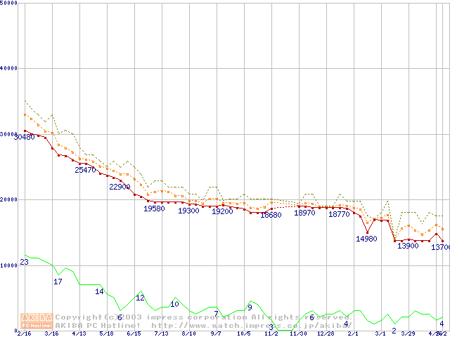 WD Caviar (7200rpm,UltraATA/100,2MB)の最安値推移
