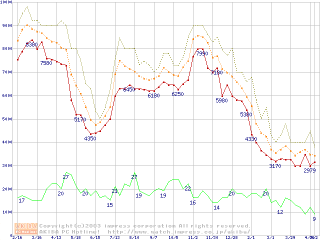 PC2100(DDR266) DDR SDRAM DIMM(CL 2.0)の最安値推移