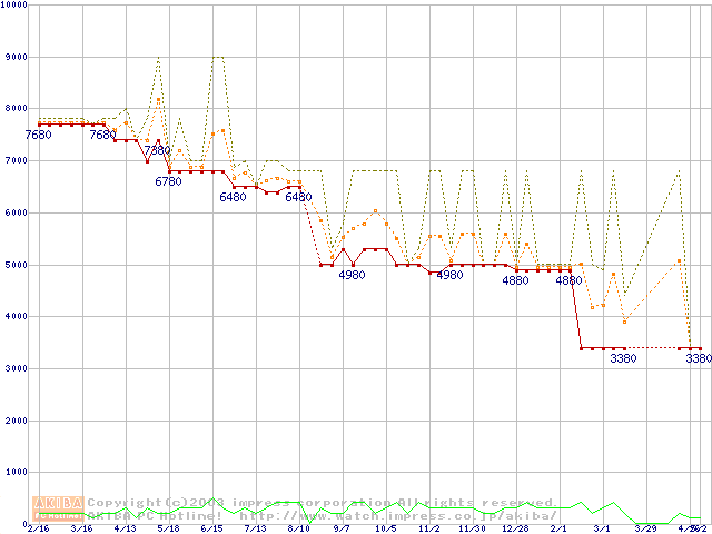 Socket 370 (PGA,FSB 100MHz,L2 64KB,Ezra)の最安値推移